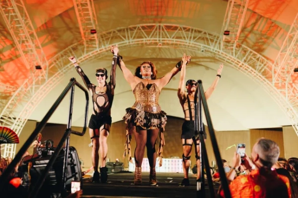 Натовпи захоплено ахають, коли вулицями котиться блискучий вулкан, а блискуча лава тече під гламурною гендерно-неконформною виконавицею, яка представляє Пеле, гавайську богиню вогню та вулканів.