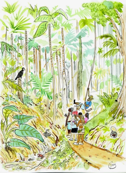Звідти ми вирушимо на нашу першу екскурсію до лісового заповідника Мейн-Рідж, зони тропічного лісу, що охоплює круті центральні хвилясті скелі, що утворюють головний хребет острова.
