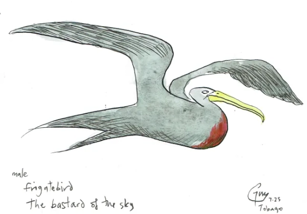 Ми відвідуємо острів Літтл-Тобаго, заповідник морських птахів, де з високих скель ми спостерігаємо, як фрегати крадуть рибу у птахів, що сміються, смикаючи їх за хвостове пір'я під час польоту.