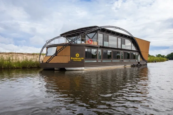Щоб ще краще познайомитися з дикою природою, я зупиняюся на Pangolin Voyager II, першому в Африці повністю електричному хаусботі на сонячній енергії, який був спущений на воду в липні як доповнення до існуючого готелю Pangolin у Касане, воротах до Національного парку Чобе.